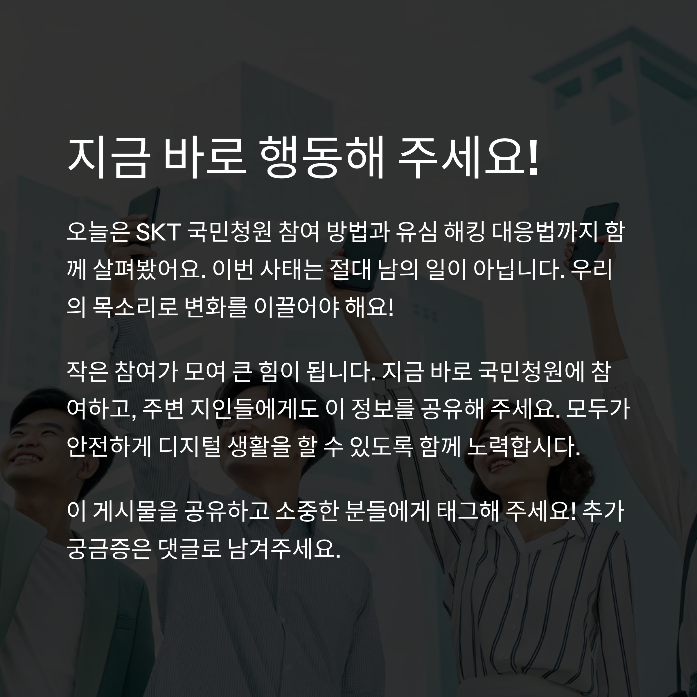 혹시 여러분, 이번 SKT 유심 해킹 사태 소식 들으셨나요? 📢 피해가 심각한 만큼, 우리가 직접 목소리를 내야 할 때가 왔어요.